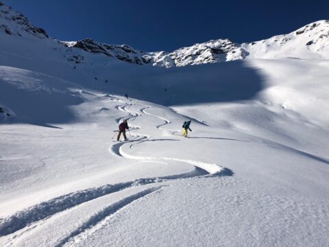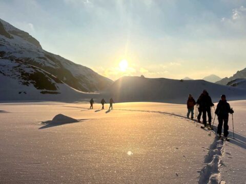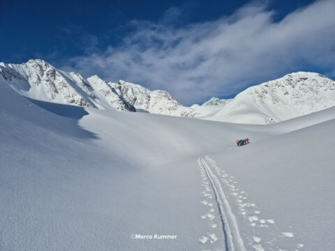 Unsere Philosophie: Wir bieten absichtlich nicht allzu viele Tourenwochen an. Dafür können wir die ausgeschriebenen Touren auch durchführen. Unsere Gruppen sind klein (max. 4 – 7 Teilnehmer pro Bergführer) und somit profitierst du von individueller Führung und kannst auch dazulernen. Bei Anmeldungen bis zwei Monate vor Tourenbeginn gewähren wir CHF 50.- Rabatt (ausgenommen Tiefschneekurs, Lawinenkurs, Norwegen, Kanada und J+S Kurs).