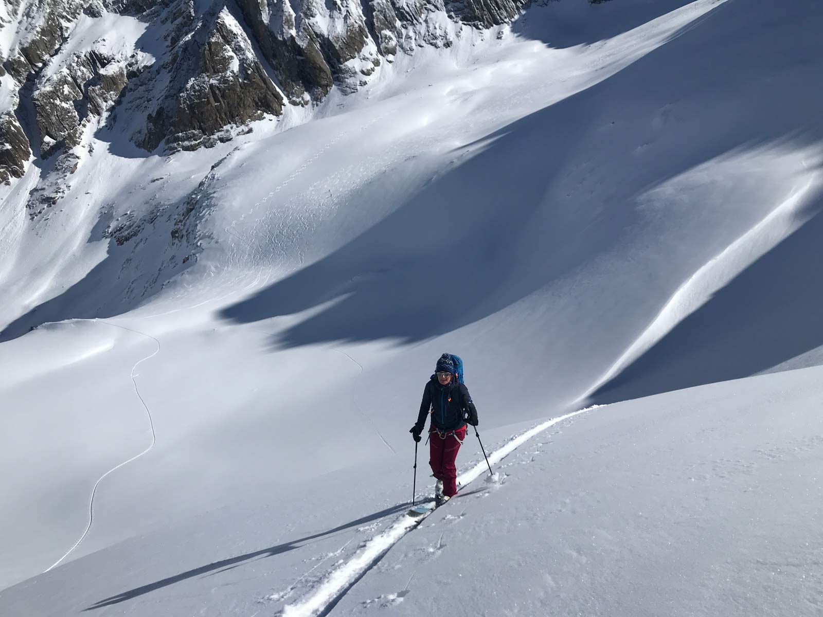 Anforderung: Skifahren in jedem Schnee mit Rucksack. Kondition für Aufstiege über 1500m. Gehen mit Steigeisen.